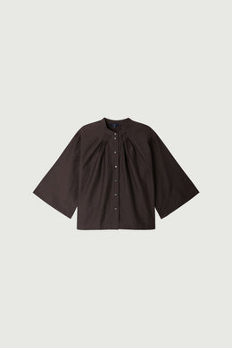 Blouse in wrinkled coffee poplin in organic cotton coffee